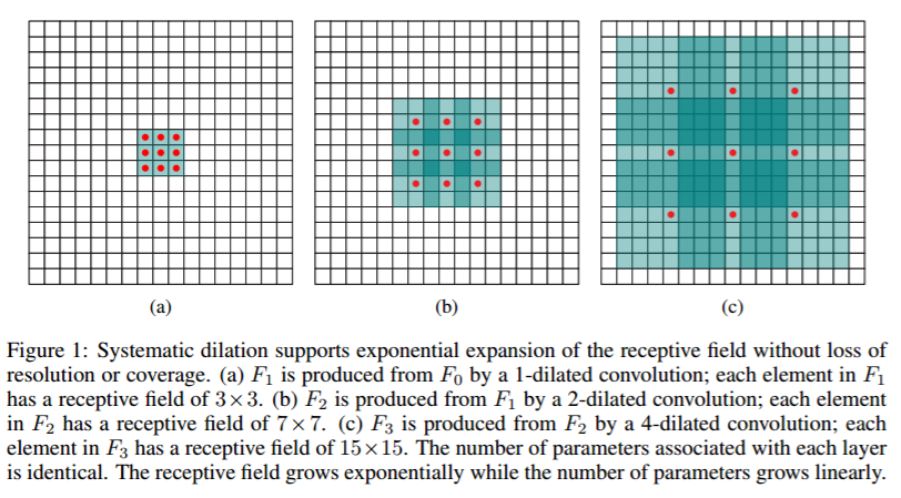 (c)图是4-dilated convolution,能达到15x15的感受野。